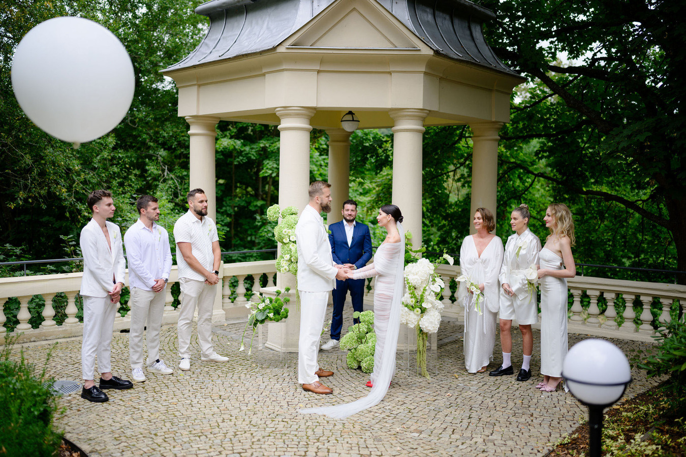 Wedding planner Kristyna Milska Weddings Venue Villa Julius & Emma P. Videography Stanislav Barachevsky Florals Lásky květ Bride’s Haistyling Jirka Kiessling Bride’s Makeup Machatova Cake V cukru s JK Rings Zlatnictvi Josef Altman Nails Yanita Touch Furniture Maximum Services