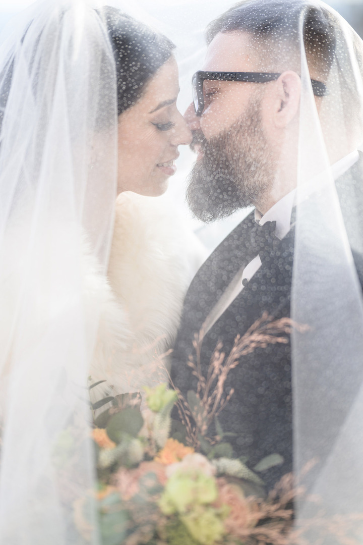 bride and groom at Cathedral of st Peter and Pavel in Brno