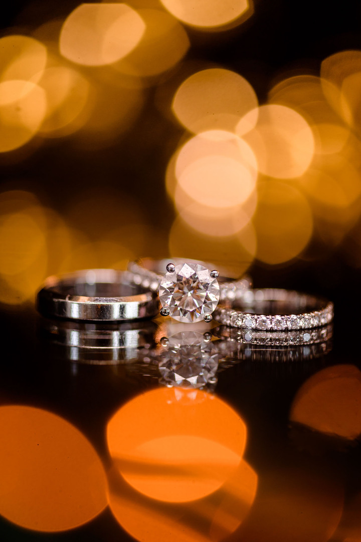 svatební oznámení s prstenem náušnicemi a rudou růží